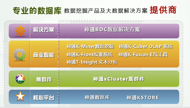神舟通用公司主營業(yè)務(wù)主要包括神通關(guān)系型通用數(shù)據(jù)庫、神通KStore海量數(shù)據(jù)管理系統(tǒng)、神通xCluster集群件、神通商業(yè)智能套件等系列產(chǎn)品研發(fā)和市場銷售。基于產(chǎn)品組合,可形成支持交易處理、MPP數(shù)據(jù)庫集群、數(shù)據(jù)分析與處理等解決方案。公司擁有40余名實戰(zhàn)經(jīng)驗豐富的中高級數(shù)據(jù)庫技術(shù)服務(wù)人員,可提供數(shù)據(jù)庫系統(tǒng)調(diào)優(yōu)和運(yùn)維服務(wù)。公司客戶主要覆蓋政府、電信、能源、交通、網(wǎng)安、國防和軍工等領(lǐng)域,率先實現(xiàn)國產(chǎn)數(shù)據(jù)庫在電信行業(yè)的大規(guī)模商用。